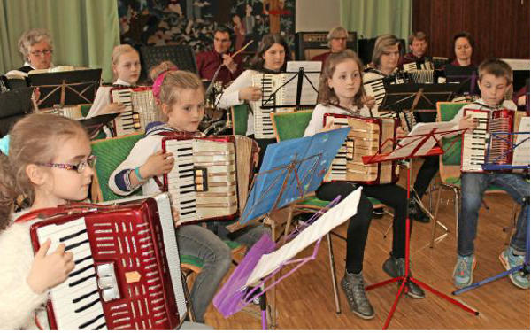 Adventsfenster zusammen mit dem Akkordeon-Nachwuchs.